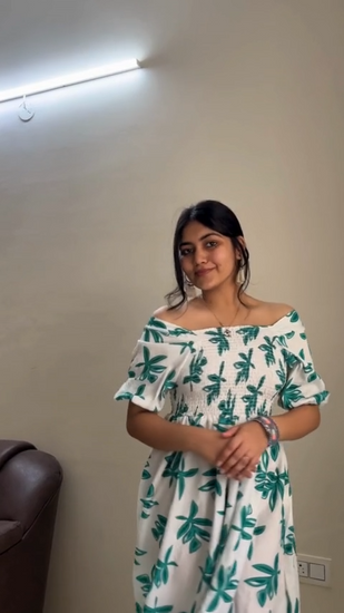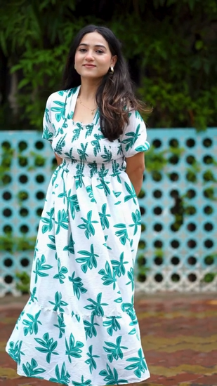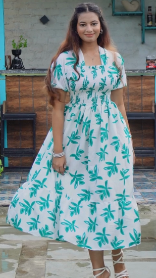 Green and White Printed Midi Dress