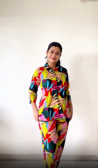 Vibrant Delight Multicolor Print Shirt-Style Co-ord Set